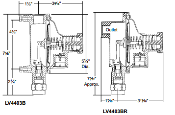| LV4403B4 | ½" F. NPT | ½" | #28 Drill | 11" w.c. at 10 PSIG Inlet |