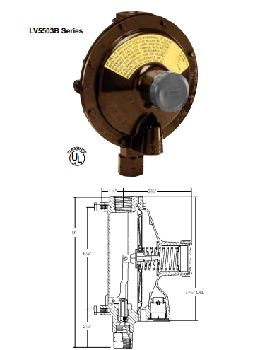 | LV5503B4 | ½" F. NPT | ¾" F. NPT | ¼" | 11" w.c. at 10 PSIG Inlet |