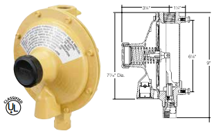 Inlet Connection | Outlet Connection | Orifice Size | Factory Delivery Pressure | Adjustment Range | Bonnet Vent Position | Vapor Capacity BTU/hr Propane* |